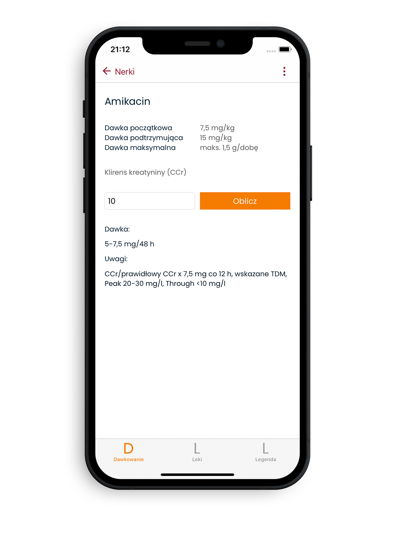 check iconmoduł NERKI - kalkulator dawkowania leków u pacjentów z różnym stopniem niewydolności nerek
