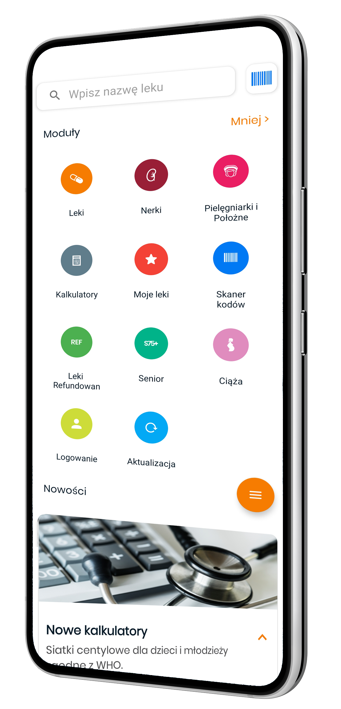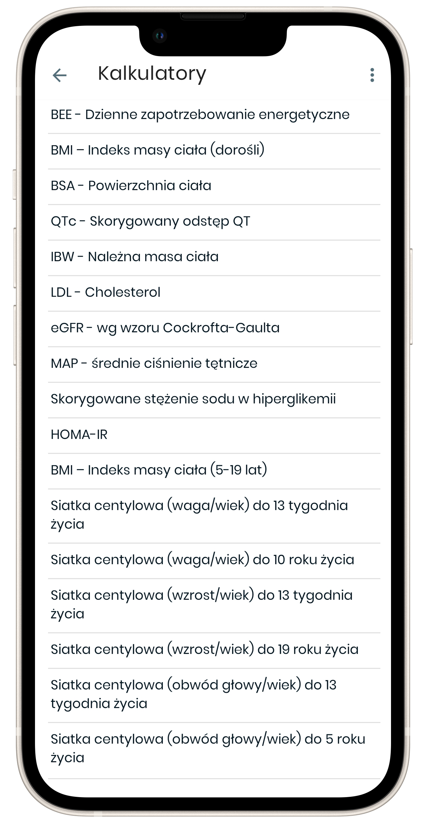• kalkulatory medyczne, w tym m.in. filtracja kłębuszkowa (GFR) dla pacjentów z chorobami nerek