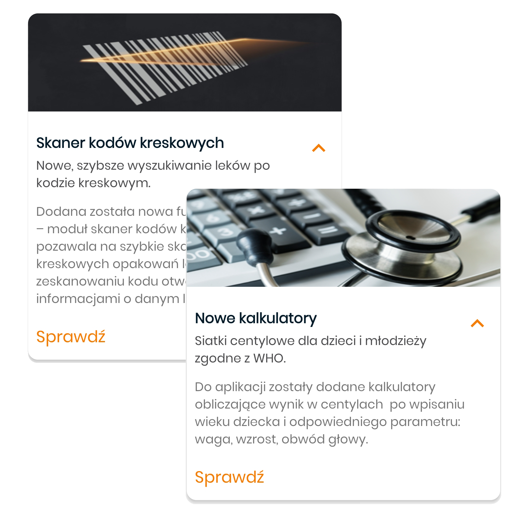 • największa baza leków - 30 000 opisów leków, suplementów diety, wyrobów medycznych i środków specjalnego przeznaczenia żywieniowego